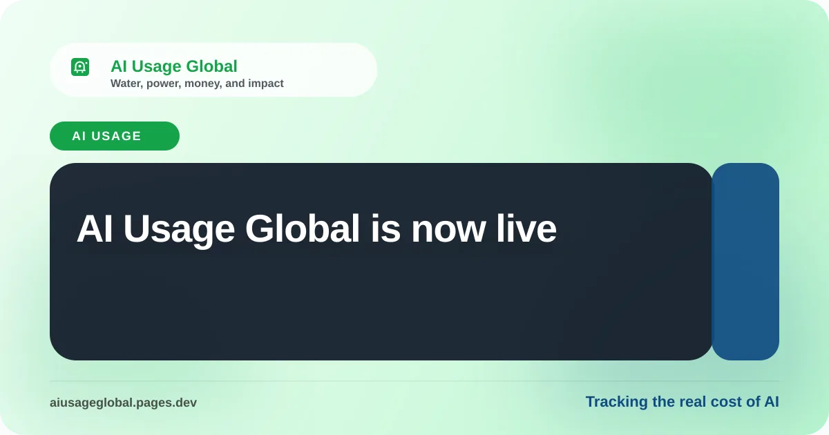 AI Usage Global is a daily publication focused on one thing: the real cost of AI. Water consumption by data centers, energy and power usage driving up electricity demand, rising compute costs pricing out researchers, and the environmental impact of scaling artificial intelligence worldwide.