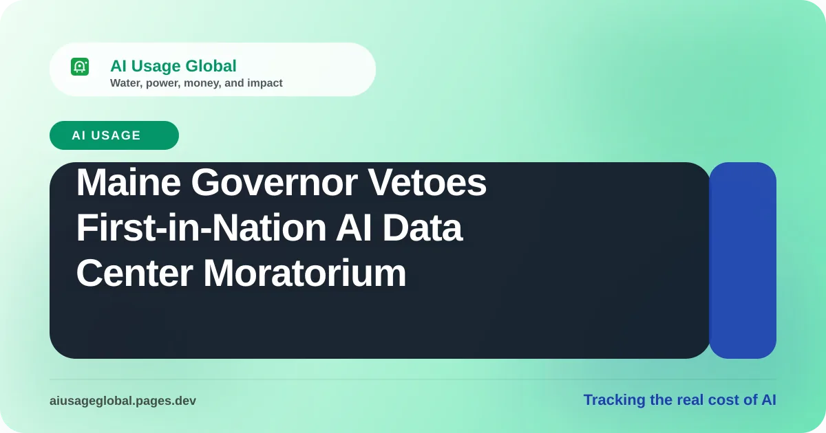 Maine Governor Janet Mills has vetoed a bill that would have established the first statewide moratorium on large-scale AI data center construction in the United States. The decision prevents a temporary freeze that proponents argued was necessary to protect the state's power grid and environment from the rapid expansion of energy-hungry compute infrastructure.